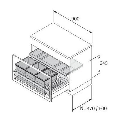 - Einbauhöhe 345 mm ab Oberkante Schubkastenboden