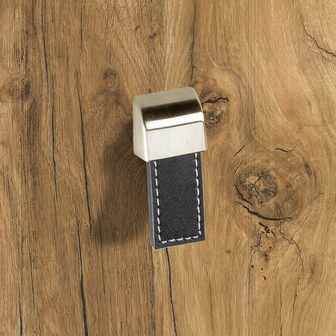Hettich Knopf Agna, L 20 mm, B 50 mm, H 25 mm, Leder braun / Edelstahl Optik gebürstet