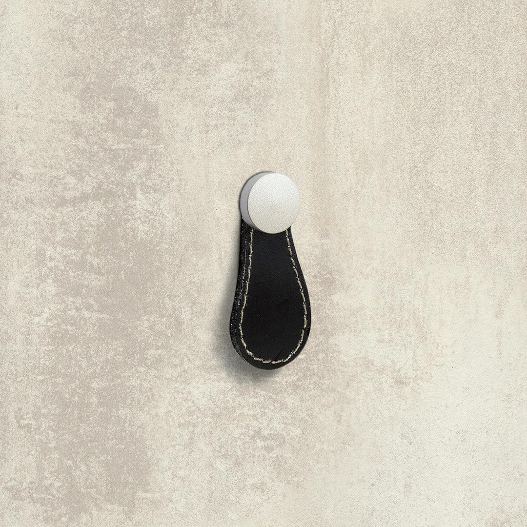 Hettich Knopf Galati, L 27 mm, H 57 mm, Leder schwarz