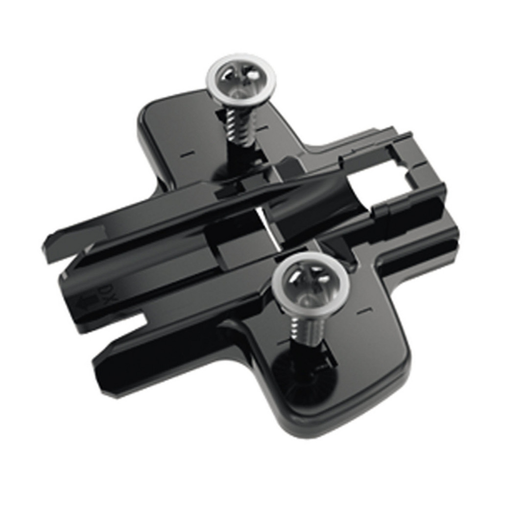 Hettich Kreuzmontageplatte mit Langloch-Höhenverstellung, in obsidianschwarz, Lochreihe 37 x 32 mm, Hettich Direkt mit Pilotzapfen und Spezialschrauben (für Bohrung ø5 x 7,5 mm), Distanz 3,0 mm