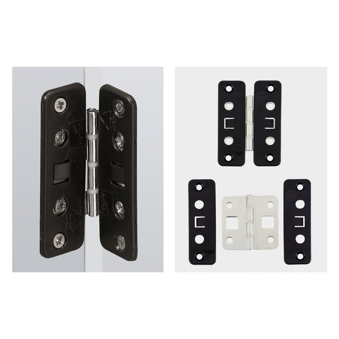 | Scharnieroberfläche | Stahl vernickelt / Kunststoff schwarz |