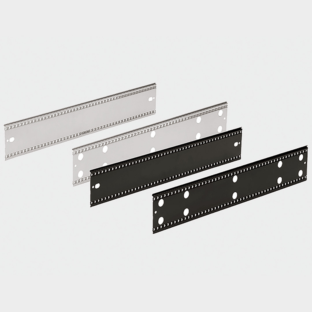 • Sollen Breitwandschübe mit Karteibahnen, Fachteilern oder Trennwänden organisiert werden, muss zunächst die OrgaLine an den Vorder- und Hinterseiten der Breitwandschübe montiert werden. In Verbindung mit der Trennwand kann alternativ zur OrgaLine auch der OrgaClip eingesetzt werden.