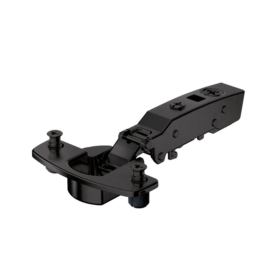 Hettich Sensys Dicktürscharnier, Türdicke bis 32 mm, ohne Schließautomatik (Sensys 8661), in obsidianschwarz, vorliegend, Öffnungswinkel 95°, TH-Bohrbild 52 x 5,5 mm, mit Spreizmuffen (ø 10 x 11)