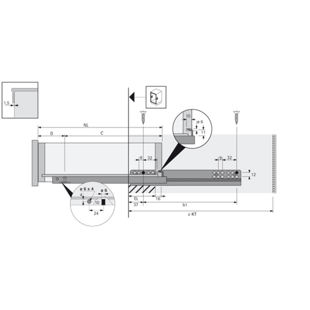 - Geeignet für Schubkästen mit Zargendicke bis 16 mm
