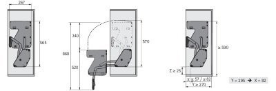- Einsetzbar in Kombination mit scharnierten Türen oder Klappenbeschlägen