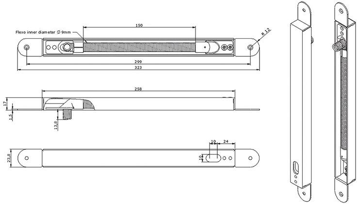 • Für verdeckte Montage von Zuleitungen im Türfalz