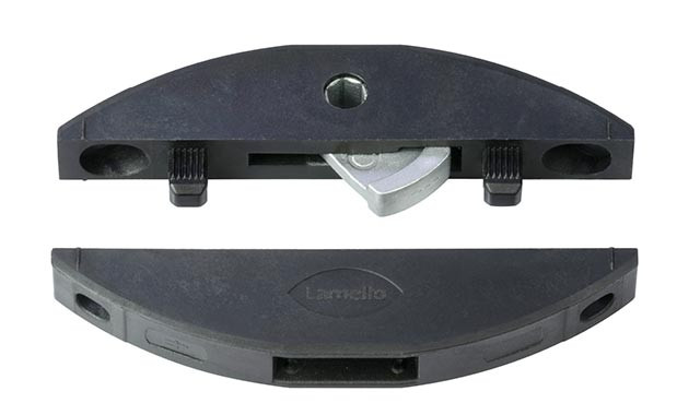 Clamex S-18 ist ein wiederlösbarer Verbinder und wird in einer 8 mm breiten Nut festgeschraubt. Durch die minimalistische 6 mm Bedienungsöffnung wird Clamex S-18 über einen Hebel kraftvoll verbunden und wieder gelöst. Clamex S-18 kann mit jeder Lamello Nutfräsmaschine eingesetzt werden, ermöglicht ästhetische Verbindungen in allen Winkeln und ist ideal für feste oder zerlegbare Gehrungsverbindungen. Clamex S-18 wird in Gehrungen ab 19 mm Plattenstärke oder in stumpfen Verbindungen ab 15 mm eingesetzt.