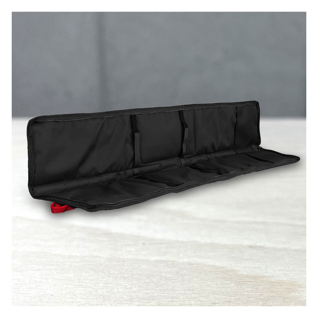 Wertige und robuste Führungsschienentasche mit Außenfach und innenliegender Einstecktasche. Zusätzliche Klettbänder schaffen eine sichere Transportmöglichkeit für mehrere Führungsschienen. Die Tasche bietet Platz für Führungsschienen bis zu einer Länge von 1,6 m. Zur individuellen Kennzeichnung verfügt jede Tasche über einen Einschub für Visitenkarte oder Namensschild.