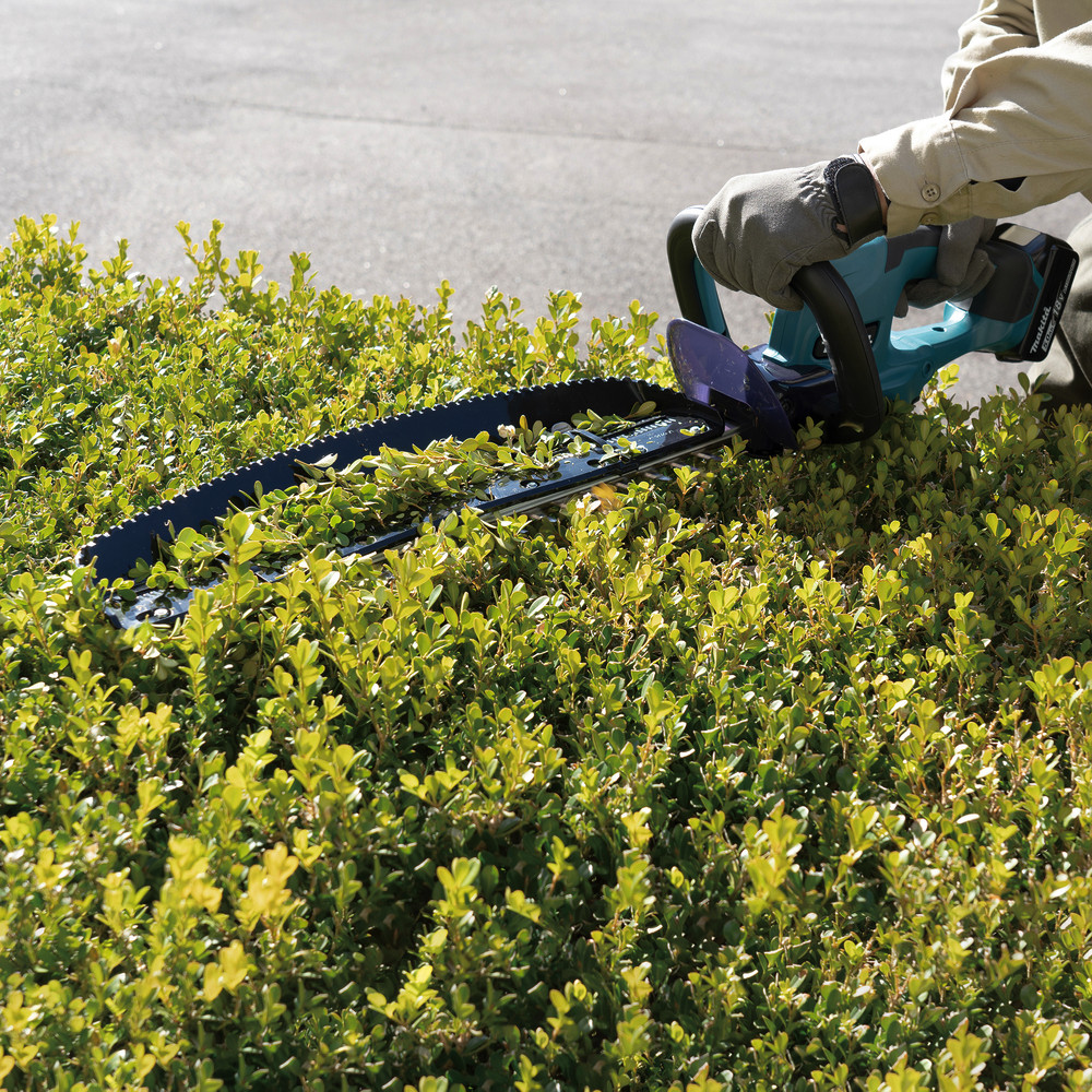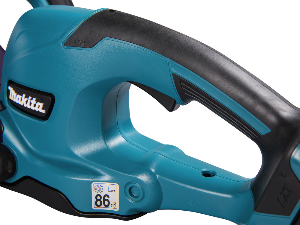 Die leichte Akku-Heckenschere DUH507 bringt inkl. einem BL1860B 6,0 Ah Akku 3,0 kg auf die Waage. Mit einem eingesetzten Akku ist diese optimal ausbalanciert und beugt dadurch auch bei langem Arbeiten Ermüdungserscheinungen vor. Die optimale Klingenform ermöglicht das Schneiden von Zweigen bis zu einer Dicke von 15,0 mm. Der Sicherheitsschalter im oberen Handgriff ist dank der verbesserten Bauform in jeder Lage, ohne große Anstrengung, festzuhalten.