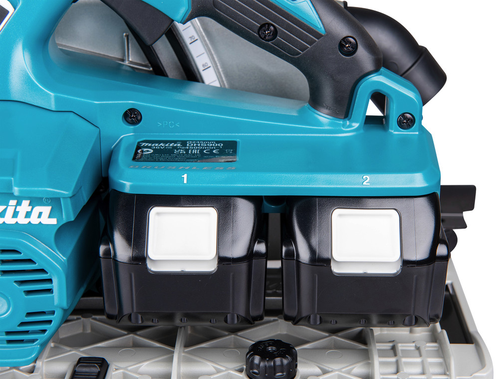 Zwei in Reihe geschaltete 18V Akkus. Die Akkus werden parallel in separate Akkuhalterungen eingeschoben.