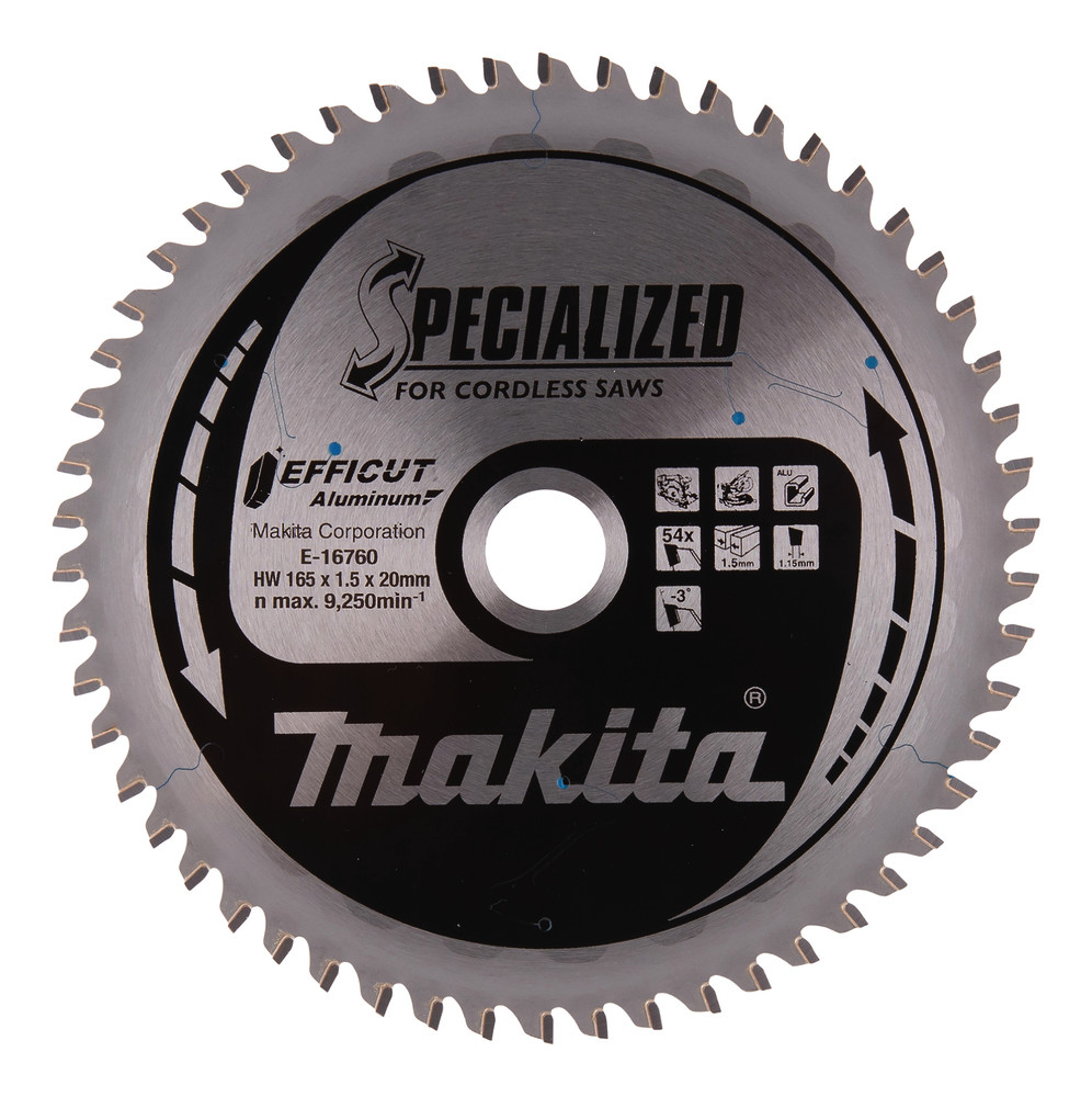 MAKITA HM-Kreissägeblatt 165x20mm Z-54 Efficut für Akku-Säge (f. Alu)