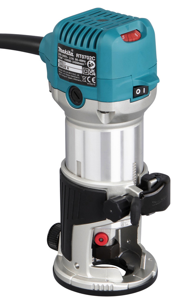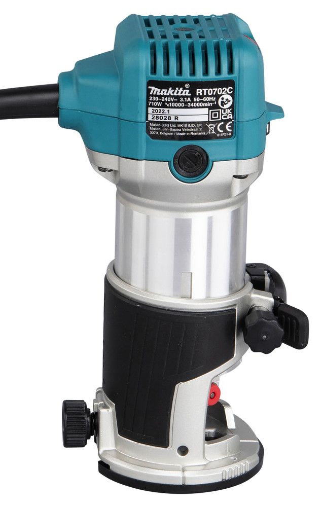 MAKITA Oberfräse / Kantenfräse / Trimmer RT0702CX2J 710 Watt im Makpac mit Ober- & Kantenfräsvorsatz 6+8mm Spannzange