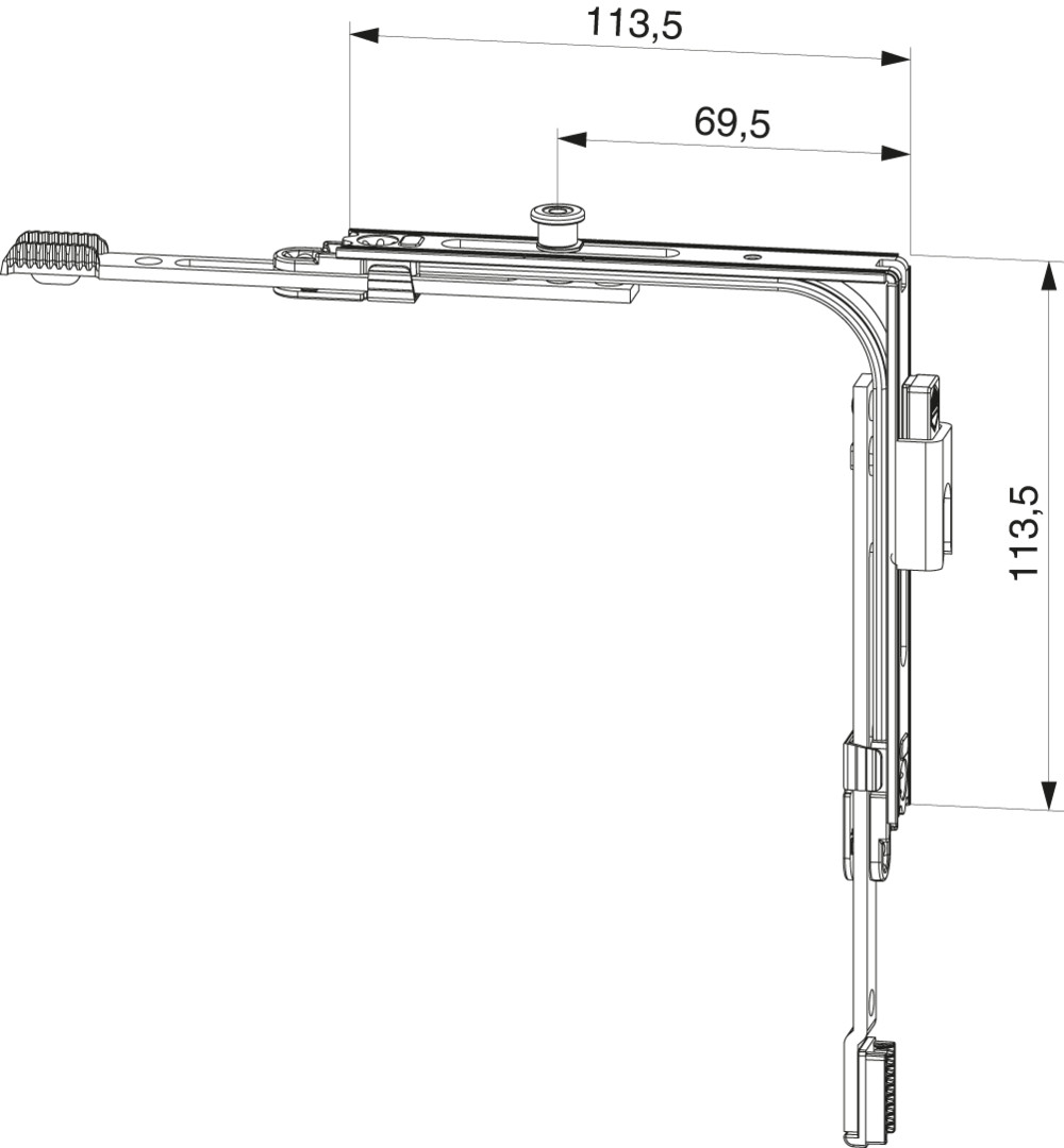 MM Eckumlenkung IQ EH für Stulpflügelgetriebe EH mit Sperrschieber mit 1 i.S. FFB 320-1.800 FFH 360-2.800 silber