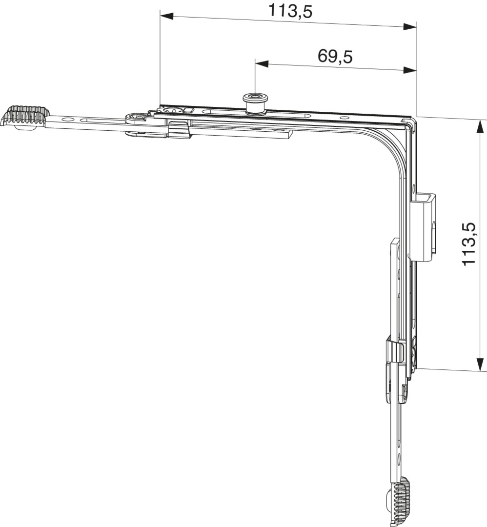 MM Eckumlenkung IQ für Stulpflügelgetriebe mit 1 i.S. und Schließteil FFB 320-1.800 FFH 360-2.800 silber