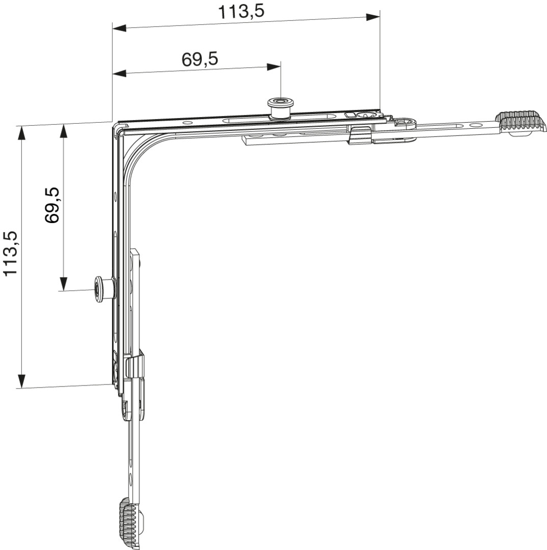 MM Eckumlenkung IQ mit 2 i.S. FFB 320-1.800 FFH 360-2.800 silber