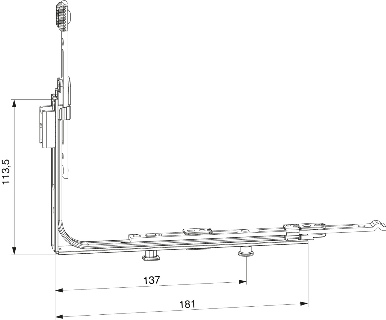 MM Eckumlenkung waagrecht IQ für variable Getriebe verlängerbar mit 1 i.S. und Schließteil FFB 320-1.800 FFH 470-2.800 silber