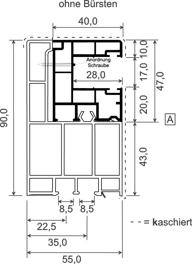 Menke Adapterprofil 55x90 mm Lg. 6,50 m foliert, Revision außen &Mini-Rollladenführung 40x47 mm Lg. 6,50 m mit zwei schwarzen Weichlippen GK Braun61 2505-167 DUNKELGRÜN [49]