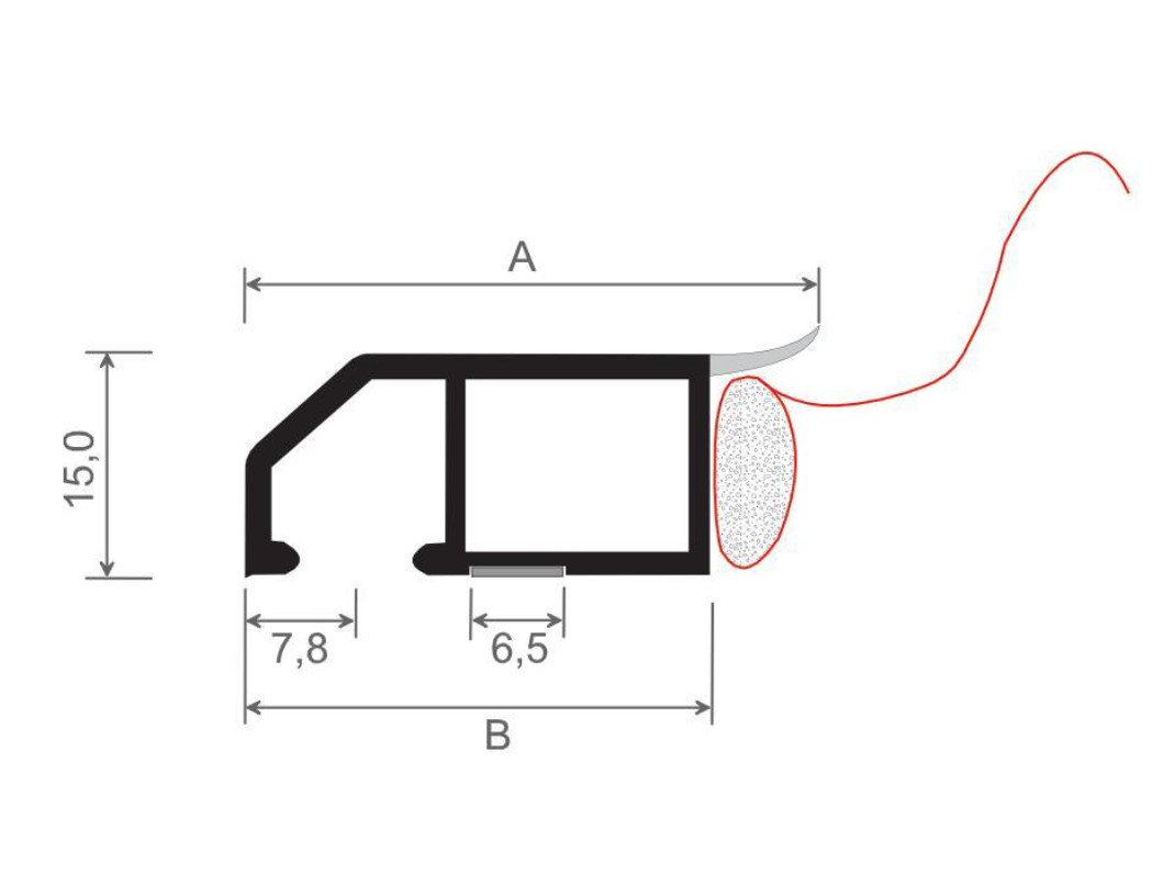 Menke Anschlussdichtprofil - 6,0m - mit Dichtband - mit Weichlippe - Klipsbar - Weiß 9016 - 40x15mm