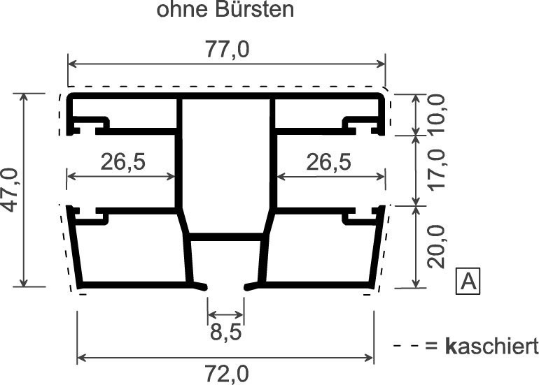 Menke Doppel-Rollladenführung 77x47 mm Lg. 6,00 m foliert, mit vier schwarzen Bürsten GK Braun85 1805-167 SCHWARZBRAUN [72]