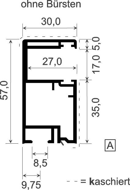 Menke Rollladenführung 30x57 mm Lg. 6,00 m foliert, mit zwei schwarzen Bürsten GK Weiß 70 3805-083 ACHATGRAU GLATT [61]