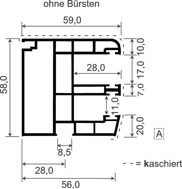 Menke Rollladenführung 59x58 mm Lg. 6,50 m foliert, für Insektenschutz, GK Braun mit zwei schwarzen Bürsten49233 SIENA ROSSO [82]