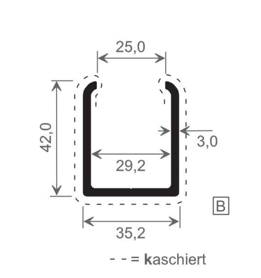 Menke U-Profil - 5,50 m - Kunststoff - 42x25mm - Eiche Rustikal [23]