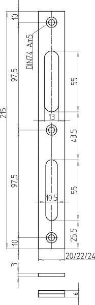 Schließblech für Rohrrahmenschloß käntig 24 x 3 x 245 mm