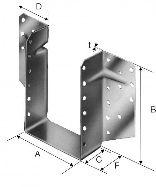 Balkenschuh mit Rippen zur Aufnahme höherer seitlicher Lasten.