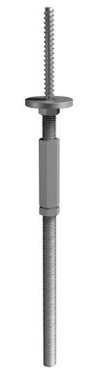 Die Stützenfüße sind zur Aufnahme von vertikalen Lasten geeignet und werden einbetoniert oder mittels Ankerbolzen am Betonfundament angeschlossen. Bei abhebenden Lasten ist ein Stabdübel Ø10mm einzubauen. Das 16 mm Spezialgewinde wird in eine Ø12 mm Bohrung bis zum Kontakt mit der Druckscheibe eingedreht. Durch die kraftschlüssige Verschraubung ist eine konstruktive Zugverankerung gewährleistet.