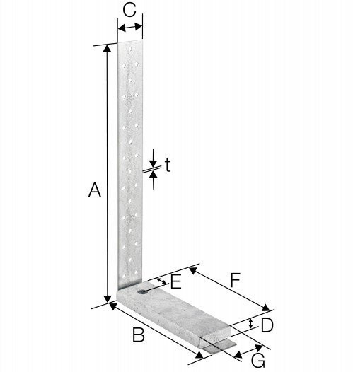 Die HD Zuganker werden zur Verbindung von Holzbauteilen an eine Betonunterkonstruktion verwendet. HD Zuganker bestehen aus zu einem Winkel abgekanteten 2-3 mm dicken, feuerverzinkten Lochblech. Im waagerechten Schenkel sind die Zuganker mit einer Bohrung für Bolzen M12, M16 oder M20 zur Befestigung auf Beton versehen. Eine feuerverzinkte Unterlegplatte von 15-20 mm Dicke leitet die Zugkraft aus dem senkrechten Schenkel in die Betonverankerung ein.