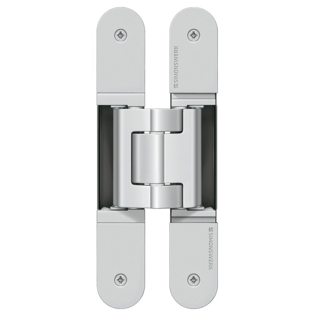 SIMONSWERK Türband TECTUS TE 540 3D. Komplett verdeckt liegend für ungefälzte Türen an Holz-, Stahl- und Aluminiumzargen. UL-zertifiziert, mit komfortabler 3D-Verstellung, Belastungswert 120 kg, Öffnungswinkel bis 180°, Gesamtlänge 200 mm, DIN rechts und links verwendbar, wartungsfreie Gleitlagertechnik, dreidimensional verstellbar: Seite +/- 3,0 mm, Höhe +/- 3,0 mm, Andruck +/- 1,0 mm.