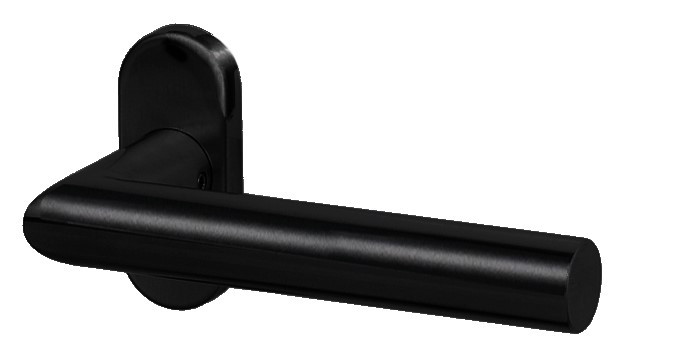 TOPFORM Drückerlochteil Jupiter schwarz - RAL 9005 feinstruktur - 10 mm - festdrehbar auf Ovalrosette mit Hochhaltefeder