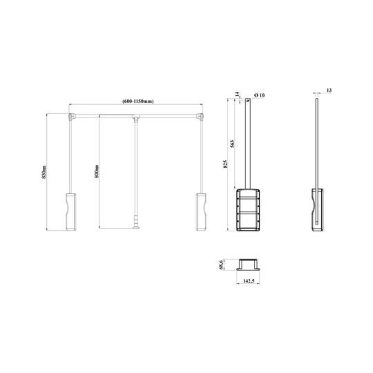| Einbaubreite | 600-830 mm |
