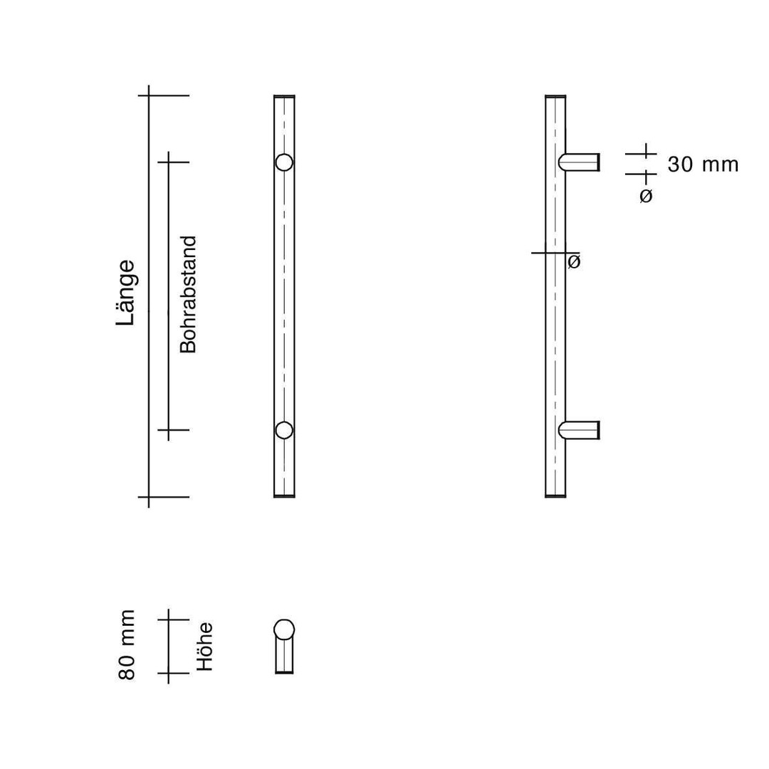 TOPFORM Montageset für schwarze Stoßgriffe - paarweise - für Türstärke 60 -85 mm