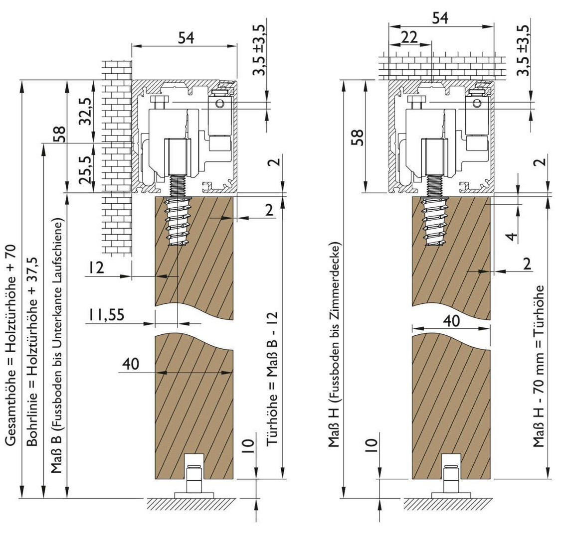TOPFORM Schiebet Nimos - Aluminium silberfarben - für Holztüren - 60 kg Tragkraft - mit Dämpfung