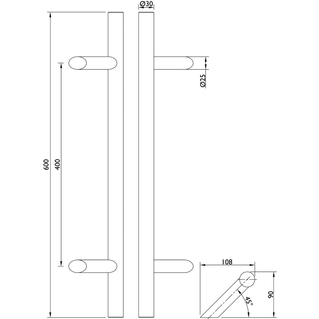 TOPFORM Stoßgriff 8010 Kassos 45° Stützen 600/30 Edelstahl mit Montageset