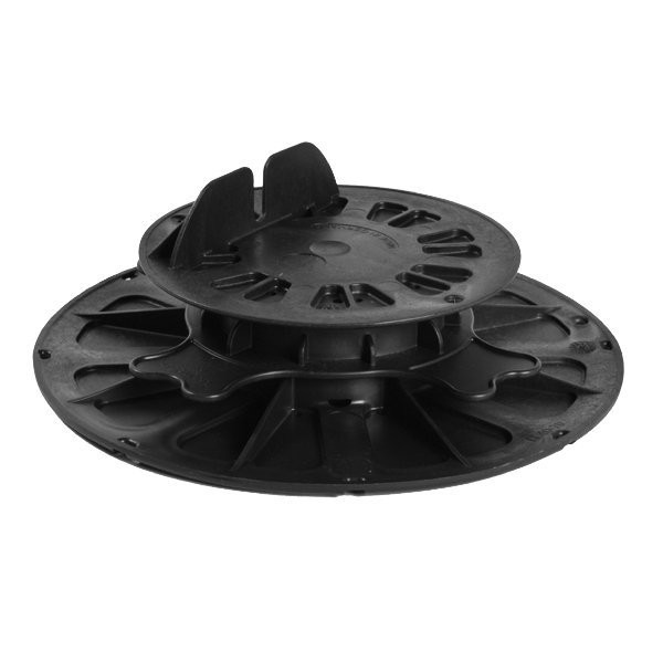Bodenteller mit 200 mm Durchmesser – kein Eindrücken in den Untergrund, große Auflagefläche und seitlichem Winkel gegen Verrutschen. Witterungsbeständig, Frostsicher, UV stabil, dauerhafte hohe Stoß- und Bruchfestigkeit.. Belastbarkeit bis zu 1 Tonne pro Stellfuß – perfekte dauerhafte Lastenverteilung.