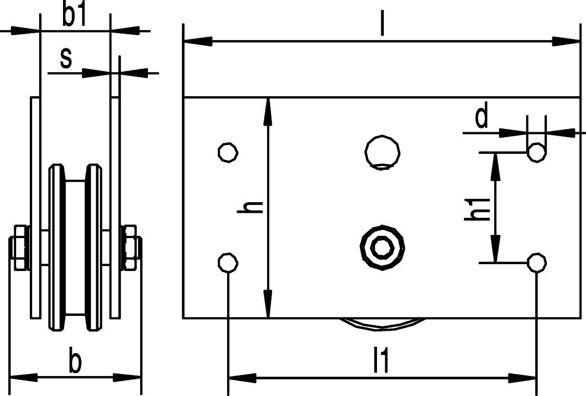 Stahlrolle mit Seitenplatten, verzinkt (blau), mit Kugellager weitere Maßangaben s. auch 880 S, 886 S und 887 S
